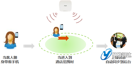 銳捷認證系統(tǒng)提供標準的接口,可以將客人的上線信息自動同步到酒店的后臺,后臺可通知門童、前臺、大堂經(jīng)理,某某客人來了。