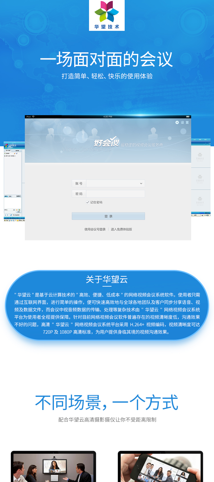 屏幕等多種媒體方式的遠(yuǎn)程視訊服務(wù)。